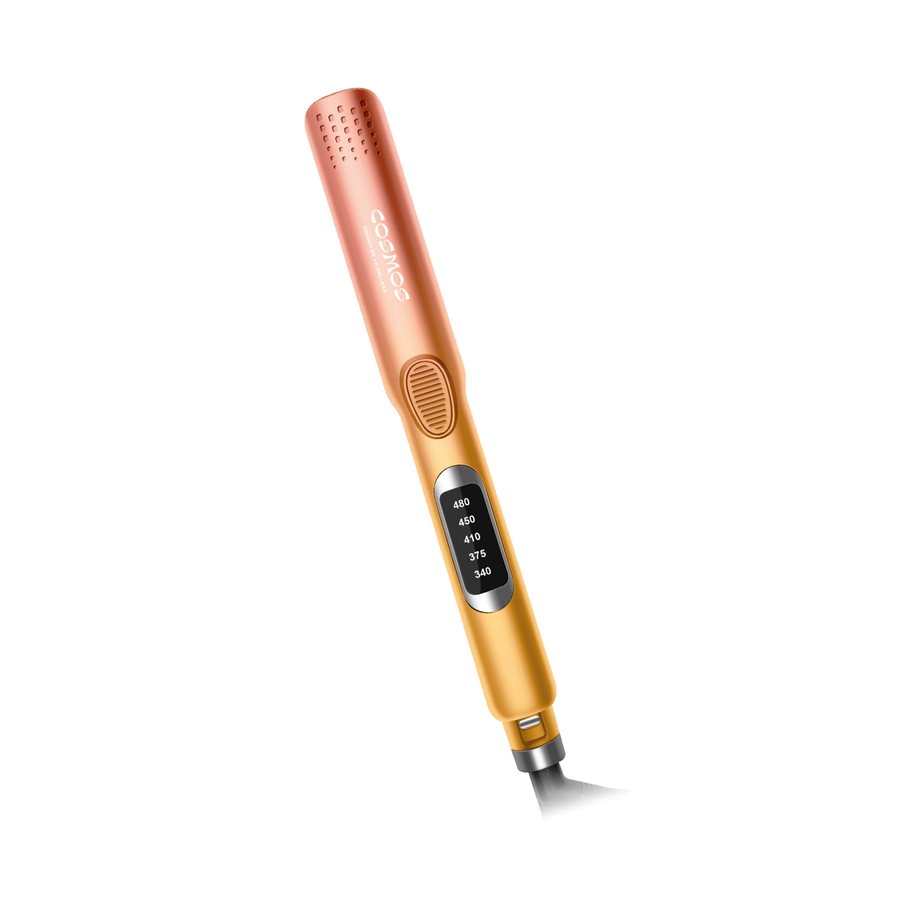 La temperatura es totalmente controlable a través de su pantalla digital LCD, alcanzando hasta 480°F, ideal para trabajar desde cabellos finos hasta los más rebeldes, de forma rápida y eficiente.