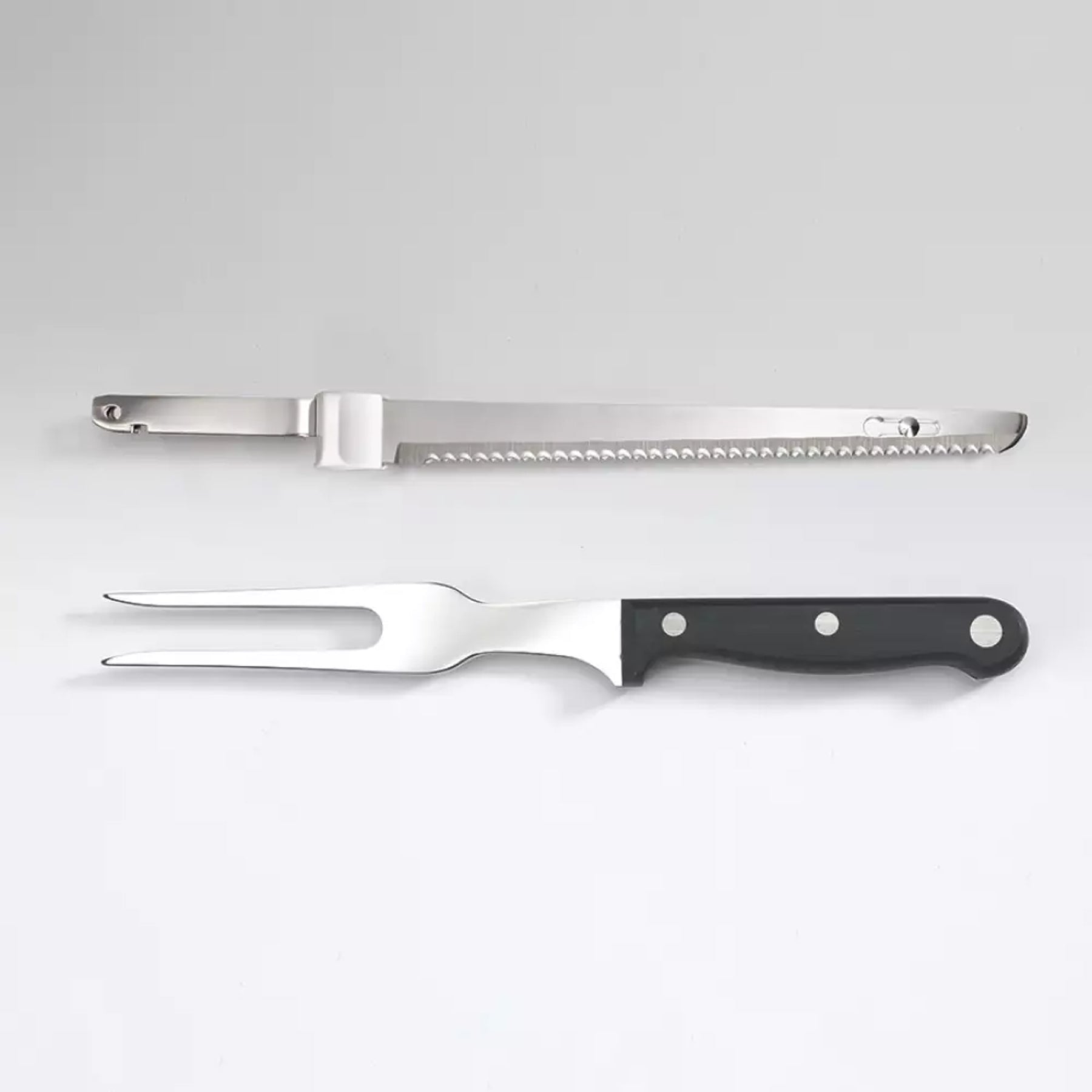 Incluye un tenedor para trinchar y un estuche compacto de almacenamiento que mantiene todo organizado en un solo lugar.